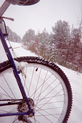 The ice builds up pretty quick on all the components, so you've gotta rotate your bikes - while the MTB thaws out in the living room it's time to take the Fuji touring bike for spin. This bike got me through a couple of Cycle-North-Carolina's,