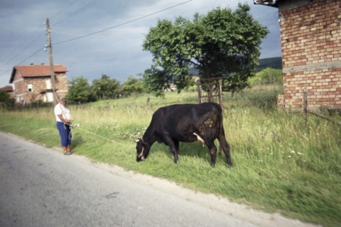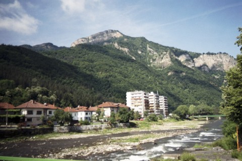 Leaving the town of Cevlievo ("СЕВЛИЕВ), I cross a bridge and see a sight that forces me go back and pull out the camera again. Along the river bank, people are picnicking and there's three goats trotting along the river. This really seems to be a land without fences. I try to confirm directions with a passer by but he doesn't understand me grabs the next pedestrian. We go through a few "Az ne gavorish Bulgarski"s and then we realize we're both Americans. He's blown away by this - he introduces himself as "John Blessing, the ONLY American around here". John's a Peace Corp volunteer here teaching at the school and comments how people would flock here to vacation if they knew how nice it was. I'm just thinking I need to get moving again when he excuses himself to continue his afternoon jog.