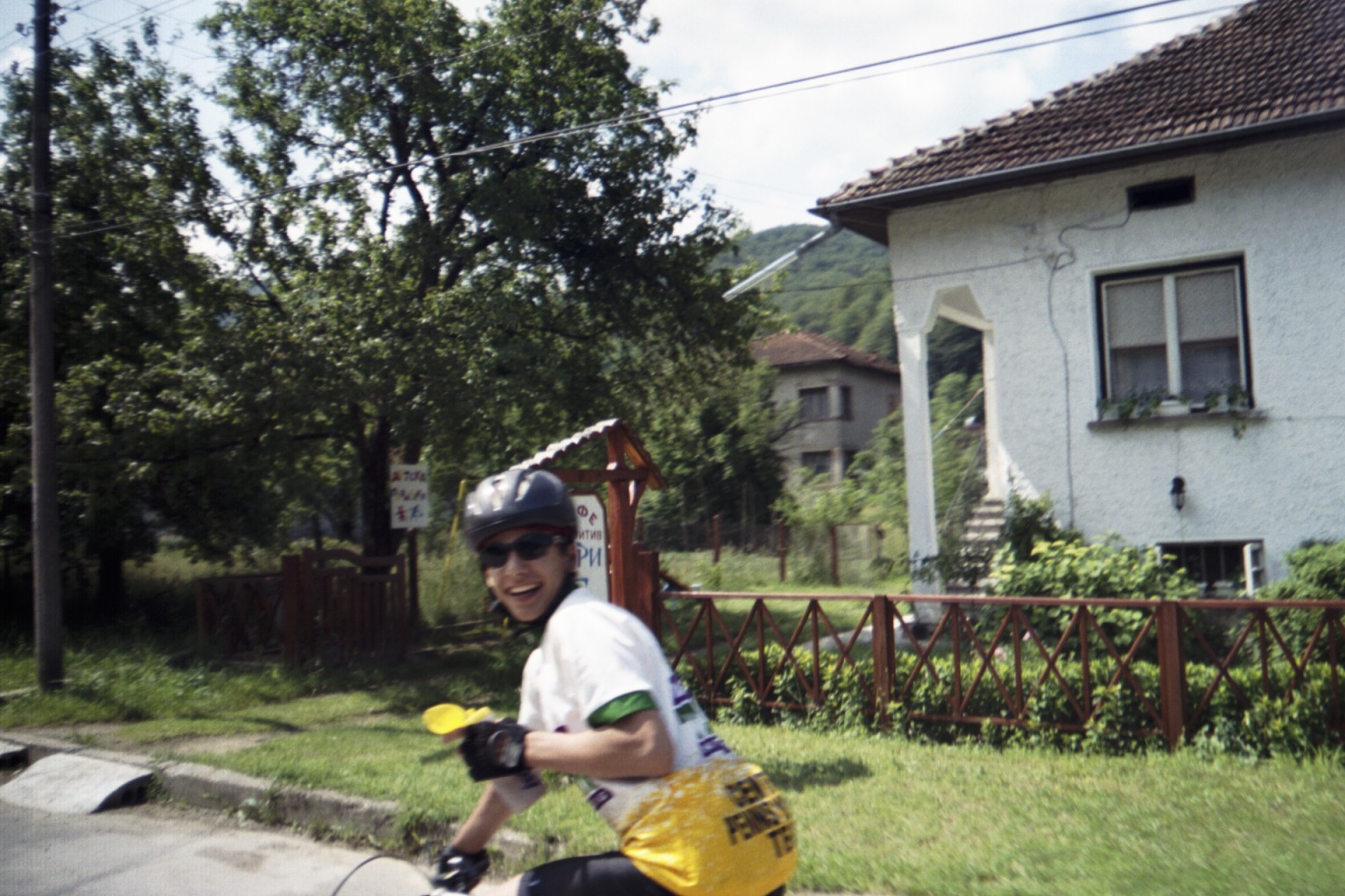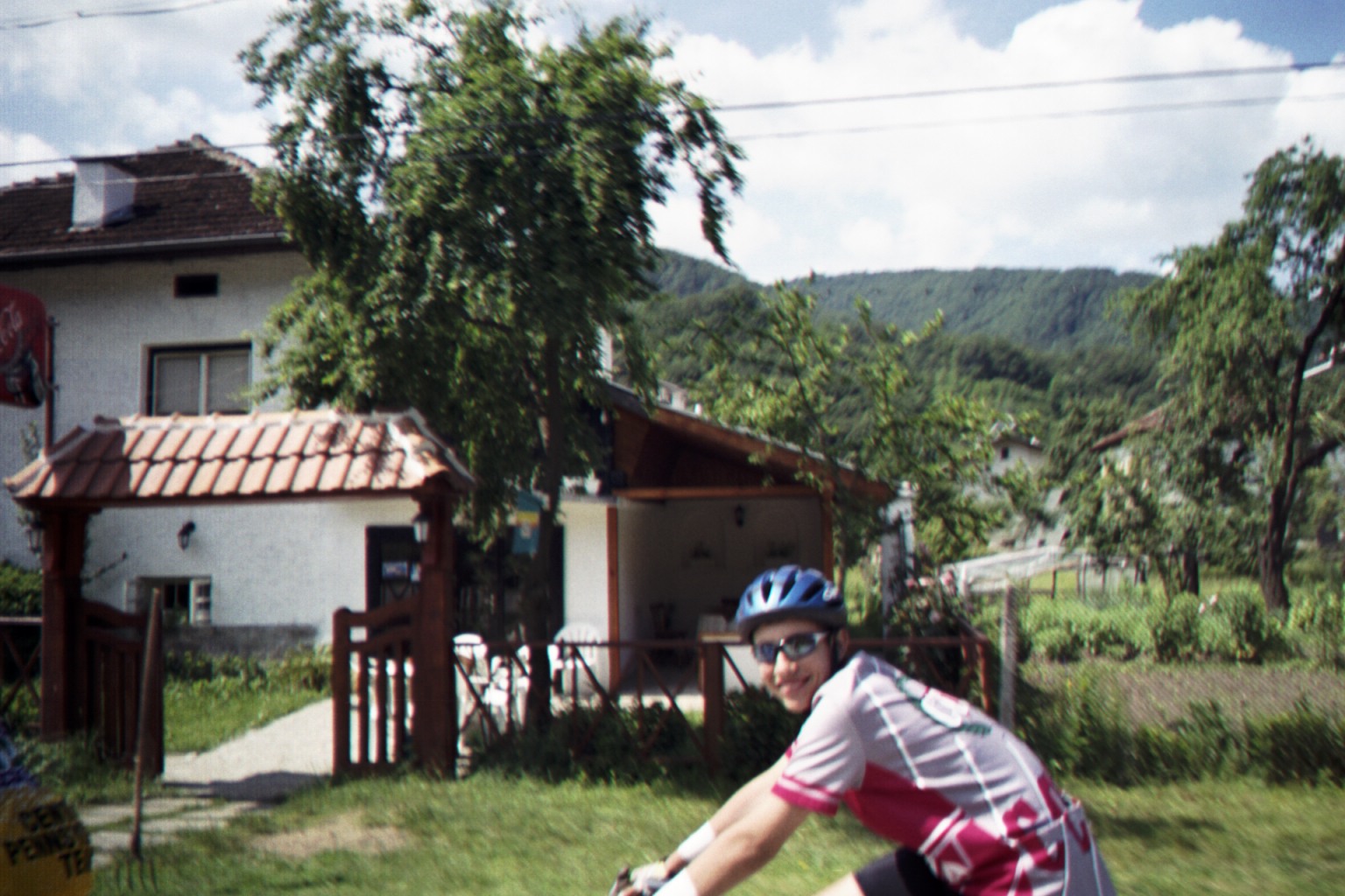 There's several quick turns (on this ride, two turns within 10km is a lot!) and I'm not sure I hit them all right. Here's Mitko again checking up on me. I feel a little less embarrassed when I realize he also has to stop and ask a local about the directions. Later I understand that where the cue sheet says "<- Cevlievo 34", I need to look for a road sign that says EXACTLY that, i.e. the road sign that indicates "turn left and go 34km to get to Cevlievo".