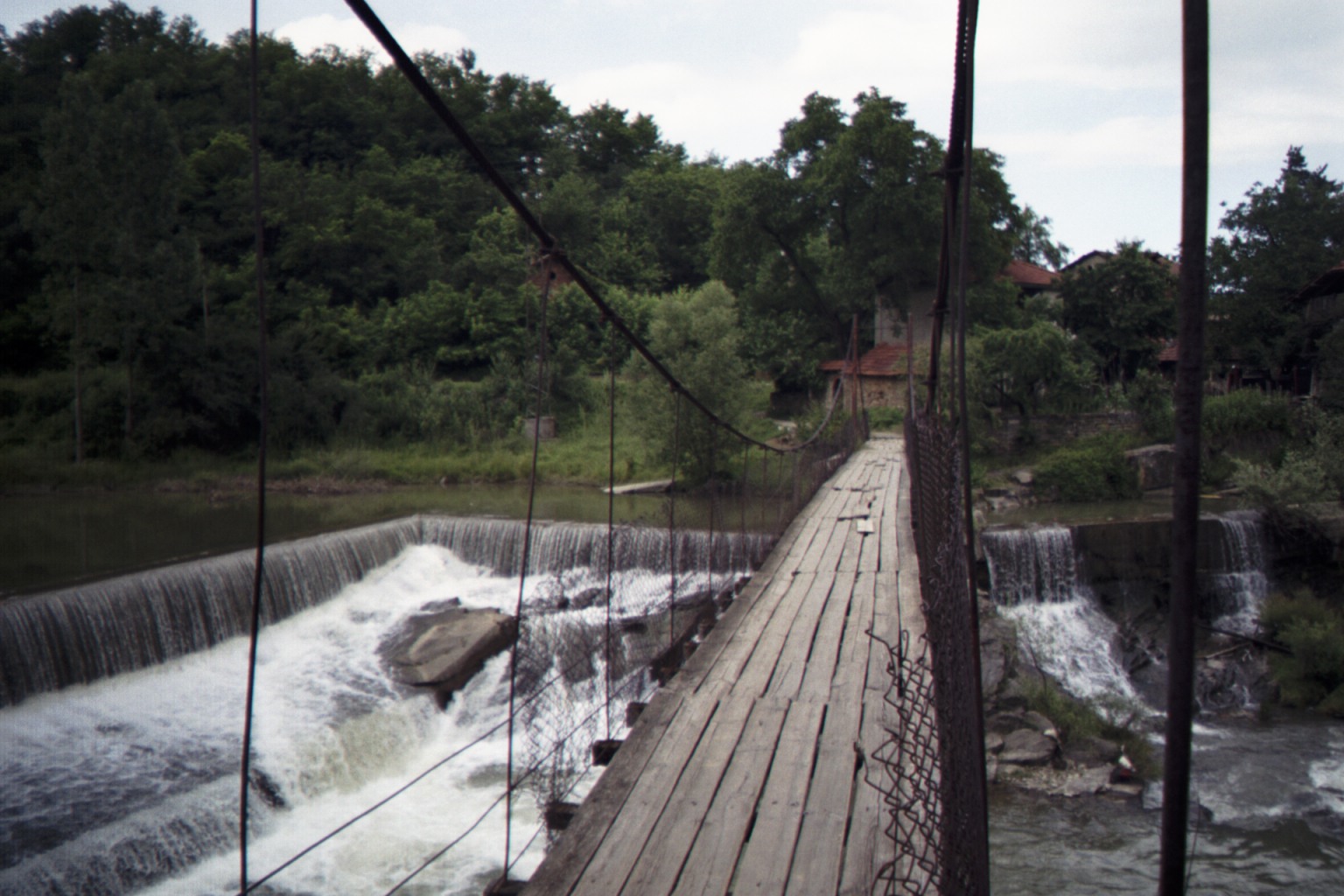 I come down a mountain road into village and I'm cruising along around 18mph when I see a guy entering the road with a dirt bike, so I race to stay up with him. I'm pouring it on up into the mid 20s and I can hear him calling out my km/hr in Bulgarian. Eventually I have to slow and he turns off. I'm still zipping along over 20mph in a flat section but I see an old stone bridge crossing a stream that I HAVE TO stop to photograph.