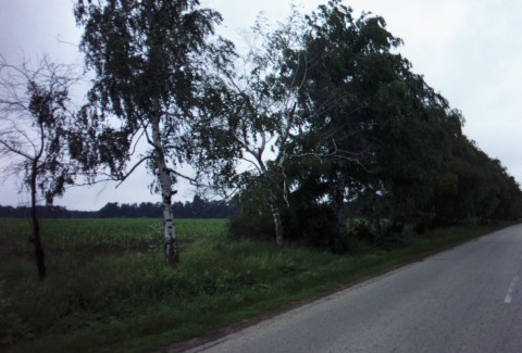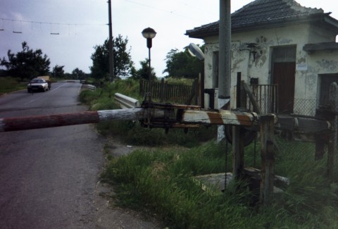 I draft a backhoe out of town, past the birch trees and into the woods south of Isperih. I come to a railroad crossing that I remember from the trip up. After crossing it the first time, I remember thinking "I probably should Look for a train, because I don't know if I should trust the automatic sensors and gate to work in place like this". This time the gates are going down slowly when I get there, so I stop, but I hear no train. I sports car flies up to the closing gate on the other side and starts blowing his horn. "What's he trying to do," I thought? Then the gate starts going back up, as if in response to his horn as he goes across the track he waves to the small building by the side of the track. That's when I see it's NOT automatic, there's actually a guy sitting there inside the shack who's in charge of raising and lowering the gate! He steps out and we exchange "Dobr Den"s. He seems to know that I'm on a ride to Varna and back - how does he know this? Or is he just guessing? I don't know if it's more downhill heading south, or if my spirits have just lifted having gotten back in contact with the ride, but I seem to reach Razgrad in no time. Turn left where I saw the hitchhikers and head for Shumen.