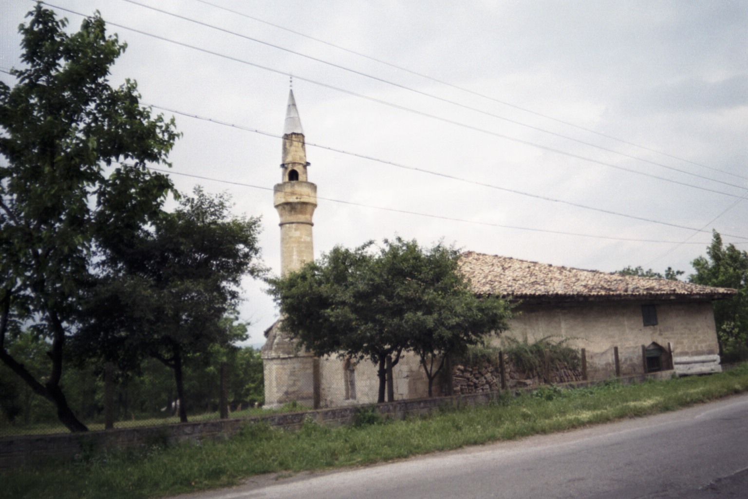 I pass an impressive gate to some kind of school I think as I come into Razgrad - enter city traffic, left turn at the Mosque, take a picture of the Minaret stop at a Bistro and order up a 1/2 liter of Zagorka (Bira) and a sandwich. They use the word "Sandwich" here, making it easy, but it's frequently "open faced" i.e. only one slice of grilled bread, with sometimes what looks like meager toppings. But the topping consists of cheese with some strong spices, so a think layer is all it takes. Very good, in fact I have another 1/2 liter of Zagorka to go with it! Then I'm off for Isperih after stopping in the middle of a Razgrad neighborhood to fill my water bottle from a roadside spring.