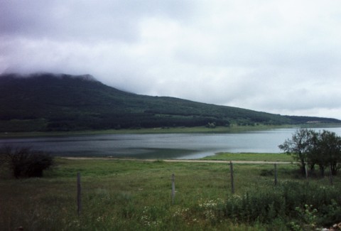 Lazar and I turn in - I plan to set out with him in the morning for at least a few miles before falling back. We walked out of the Chalet together, but I had to stop before descending that steep drive to get my front wheel and brake setup right after having removed it last night. Down the steep drive before sun-up and out of town - then I remember that I left my wallet in the drop bag at the Chalet. Climb up that steep drive to get it? Hmmm...Mitko will probably be along soon enough with the drop bags. Then again, maybe not, and that steep climb IS part of the course - part I didn't do because I SAGged up it last night. Okay, I'm going back - besides I wanted to see the view from the Chalet in the daylight. The climb wasn't nearly so tough as I'd imagined, but the sun still hadn't burnt off the morning fog enough to get a good view from the top. Got the wallet and down again. Westward past Shumen and then south toward Tragovishte. Glorious countryside - mountains with lakes at the foot.