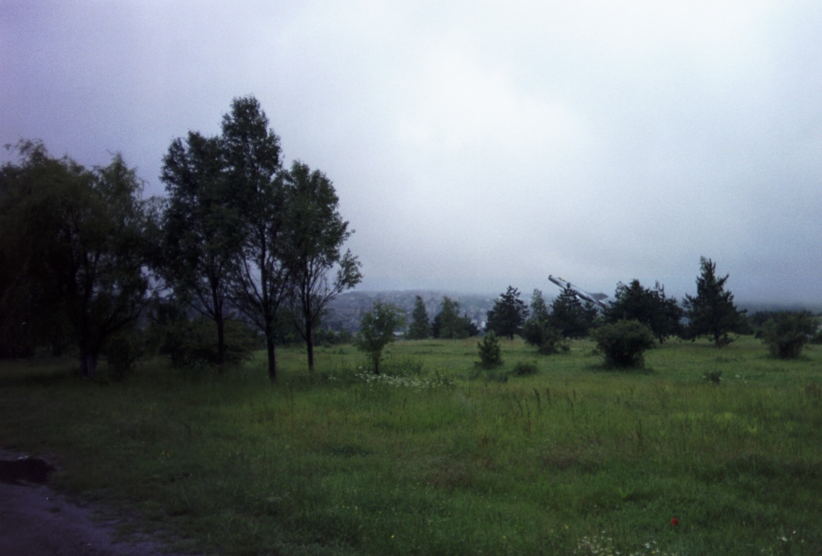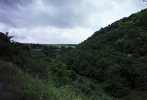 The last mountain before Sliven is a heck of climb. It's not hot, but I think the sun is getting to me. At the top, I seem to need more time to rest than the other two, but I take off just behind them. They warn me that it's a dangerous descent - wear your casque (helmet) and be careful on the turns. In one fast turn I glimpse a huge white statue of a Daniel Boone-like figure by the side of the road. I think I saw him carrying a big musket and maybe even a coon skin cap, but Lazar, who lives in Sliven has no idea what I'm talking about so maybe I imagined it.