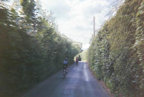 Hedges right up to the edge of the narrow road.