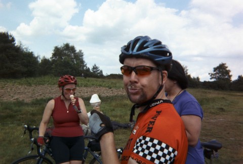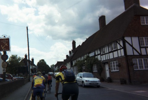 Sunday morning, I've made arrangement to meet Roger Fretwell of the Central London CTC back at London bridge for a 60-mile ride through Ashdown Forest. About a dozen of us gather at the station, have our morning coffee and take the train down to "Three Bridges" in Sussex. On the ride down "JT" tells me about other rides in the U.K.. He was watching a documentary about the discovery of evidence of Female Gladiators on the BBC last night and suddenly recognized the excavation site as being right next to his home. Very pleasant ride through rolling countryside. The roads are narrow and the hedges come right up to the road here - it would be hot, but the roads are well shaded by trees. We stop for a "pub lunch" at "Foresters Arms" in Fairwarp-a very nice full meal with beer and a long break before heading back.