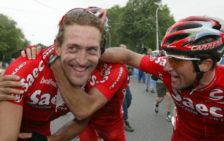 With a five hour lay-over in Philly, I had lots of time to wander around the airport and get into trouble. Checking out the newspapers I was pleasantly surprised to find the local paper not only ran an article about a race, but featured a color photo on page ONE! Hey, maybe there's hope for the USA after all? The article "From Center City to Manayunk" related the tale of the USPro Championship and the nail-biting finish to the nearly 6-hour 250km race came down to a literal photo-finish of about 2 centimeters!