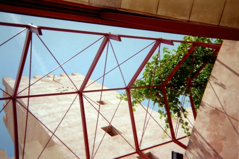 Back to the bike shop to meet with the owner—we had a nice time talking about bikes, them teaching me the Spanish words for various bike parts and clothes. The prices were good on the cycling clothes, and mine were in my lost luggage, so I bought a new Giordana sleeve less jersey and bibbers, then set out to find the University where my wife, Padmini, was giving a paper. I requested a bici carreterra (road bike) and the lady told me she'd bring one from home in the morning, but her brother looked over my plans and suggested I'd do better with an MTB ("BTT" here—Bici de Todas Terras)—he pointed out some exceptionally beautiful areas on my route, but the roads weren't all paved.